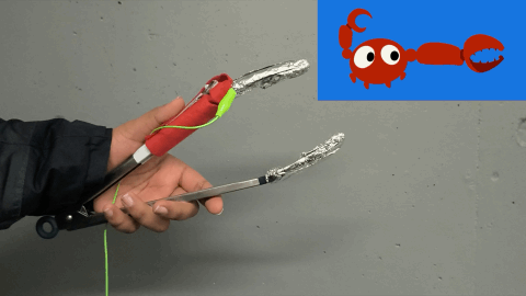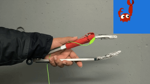 The controller was made using ordinary kitchen tongs. A Nintendo joycon was attached to it's side and was used to calculate rotations using it's gyroscope through a makey-makey. Aluminum foil was used the register the claw snaps.